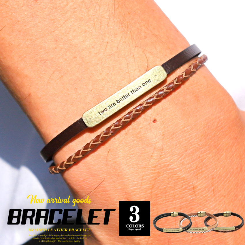 楽天市場 ブレスレット メンズ レザー プレート 編み込みレザーブレスレット バングル マグネット式 リアルレザー 牛革 本革 編み込み 編込み 英字 刻印 2連 カップル ペア プレゼント ギフト Bitter ビター サーフ ストリート Pm 8455 Clothes Unit